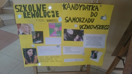 Nowym przewodniczącym SU został Jakub Zieliński. Stanowisko wiceprzewodniczącego przypadło w udziale Julii Bugaj. Zarząd SU podzielony został na dwa zespoły, w których pracować będą Kacper Pikulik, Wiktoria Ciszewska, Aleksandra Świerczyńska (zespół I) oraz Amelia Różańska, Lidia Poznańska i Maja Kaczmarek (zespół II). Równolegle odbywały się wybory do Pocztu Sztandarowego. Również wyłoniono dwa zespoły. Wyborcy zdecydowali, że szkołę reprezentować będą: Jakub Wachowiak, Paulina Gryczka, Daria Grzeszczak (zespół I) oraz Antoni Krzoska, Natalia Kwidzińska, Kinga Pietruszka (zespół II).