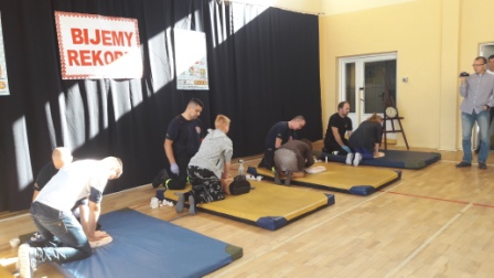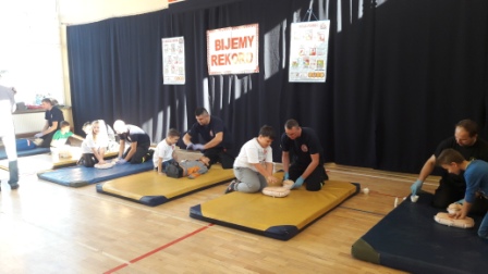 Po raz trzeci uczniowie naszej szkoły brali udział w przedsięwzięciu firmowanym przez Fundację WOŚP - bicie rekordu w jednoczesnej resuscytacji. W tym roku naszą akcję wsparli osieccy strażacy pomagając aktywnie w sprawnym przebiegu zadania. Przez pół godziny, od 12.00, bez przerwy 398 osób ćwiczyło na 6 manekinach udzielanie pierwszej pomocy w resuscytacji.