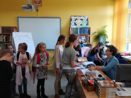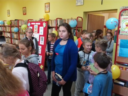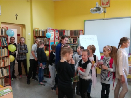 Wszyscy uczniowie wypożyczający książki w tym dniu mieli możliwość wylosowania drobnej niespodzianki: zakładki, kredek, długopisów, batoników. Odwiedziło nas we wtorek 116 uczniów.