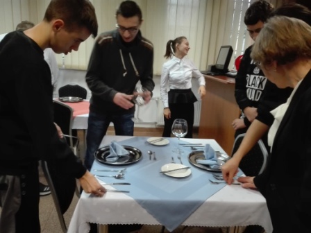 Drugą szkołą, którą odwiedzili był Zespół Szkół Gastronomicznych w Pile, w której zaproponowano im udział w zajęciach praktycznych, np. nakrywanie do stołu, przygotowanie prostych potraw oraz spotkania z obecnymi uczniami różnych kierunków (hotelarskich i gastronomicznych itp..)