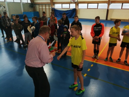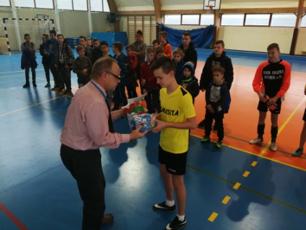 We wtorek 28.11.2017 r. na hali sportowej Centrum Kształcenia Zawodowego i Ustawicznego w Wyrzysku odbył się Gminny Turniej Halowej Piłki Nożnej. Gospodarzem turnieju był UKS Unikat oraz Szkoła Podstawowa z Falmierowa. Po raz pierwszy, wskutek reformy oświatowej, rywalizacja obejmowała klasy siódme i młodsze. Tradycyjnie w zawodach wzięły udział cztery szkoły podstawowe z naszej gminy , SP Falmierowo, SP Kosztowo, SP Wyrzysk i SP Osiek nad Notecią. Mecze odbywały się systemem każdy z każdym, w wymiarze czasowym 2 x 10 minut. Uczniowie reprezentujący naszą szkołę byli rewelacyjni, wygrywając wszystkie mecze, strzelając przeciwnikom szesnaście bramek i tracąc przy tym tylko dwie.