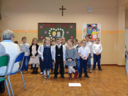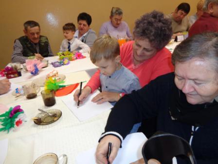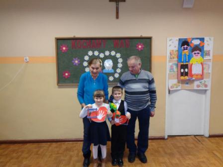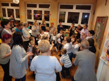 Dziadkowie mogli zobaczyć jak pięknie występują ich wnuczęta. Przedszkolaki śpiewały piosenki oraz recytowały wierszyki. Występy dzieci zostały nagrodzone gromkimi brawami. Nie zabrakło również wspólnych zabaw oraz konkursów. Kolejną niespodzianką dla naszych gości było wręczenie własnoręcznie wykonanych przez dzieci upominków.