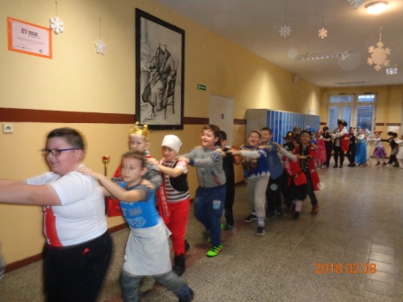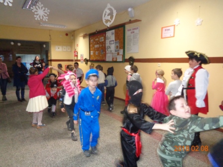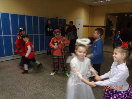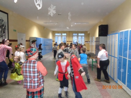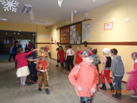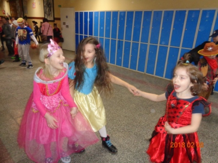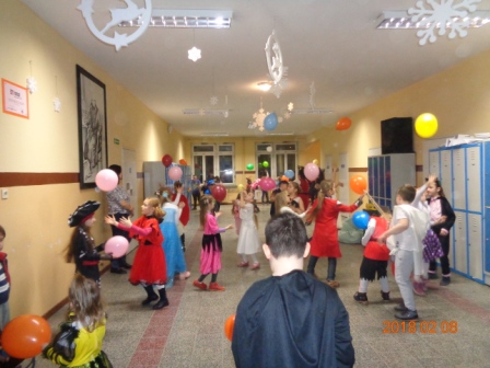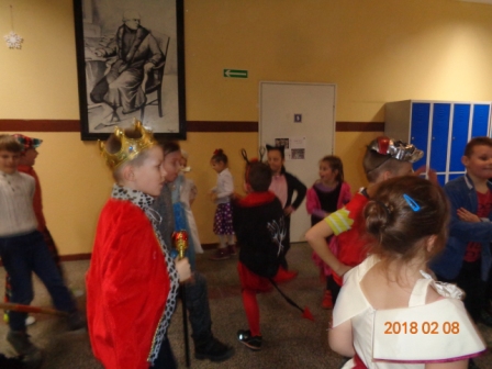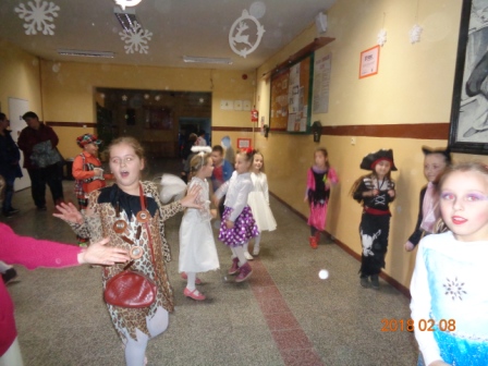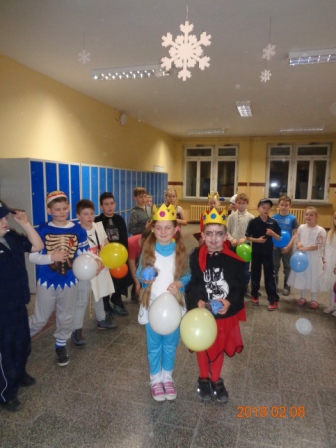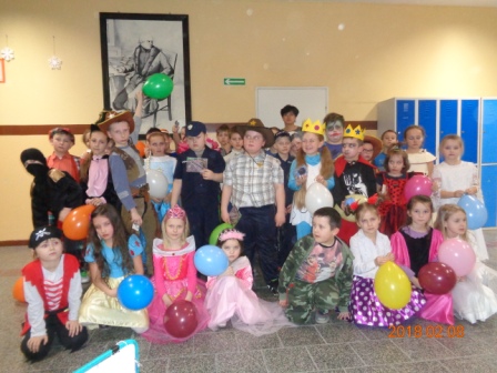Na zakończenie karnawału – 8 lutego 2018 r. - w naszej szkole odbył się oczekiwany przez uczniów klas I – III bal przebierańców. W tym dniu przenieśliśmy się do WIELKIEJ KRAINY BAJEK. Pomysłowość rodziców i dzieci nie miała granic. Tego dnia na sali balowej roiło się od piratów, muszkieterów, policjantów, kowbojów, księżniczek, Smerfów, biedronek, pszczółek, kotków, aniołków, diabełków oraz różnych innych stworów i dziwadeł... . Po pokazie strojów rozpoczęły się pląsy – przy rytmach wesołej muzyki. Były one przeplatane zabawami i korowodami. Dzieci mogły zaprezentować tańce z różnych stron świata. Największym powodzeniem cieszyły się zabawy z balonami oraz taniec na gazecie. Jak na prawdziwy bal przystało, wybrano króla i królową. Jury miało ogromny problem, ponieważ stroje karnawałowe były bardzo ciekawe. Po podliczeniu punktów wybrano zwycięzców. W tym roku królową balu została Smerfetka - Wiktoria Małek z III b, a królem diabełek - Przemek Szmyt z II a. Zwycięzcy konkursów obdarowani zostali upominkami.