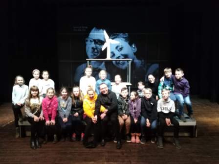 Po spektaklu spotkała nas miła niespodzianka, mogliśmy przez chwilę porozmawiać z aktorami i zrobić sobie z nimi pamiątkowe zdjęcie. Był to dla nas moment bardzo ważny, tym bardziej, że ósmego lutego miała mieć miejsce premiera przedstawienia „Opowieść wigilijna”, przed którą wielu aktorów z kółka teatralnego odczuwało ogromną tremę. Dzięki cennym radom pana Łukasza Chrzuszcza stała się ona nieco mniejsza.