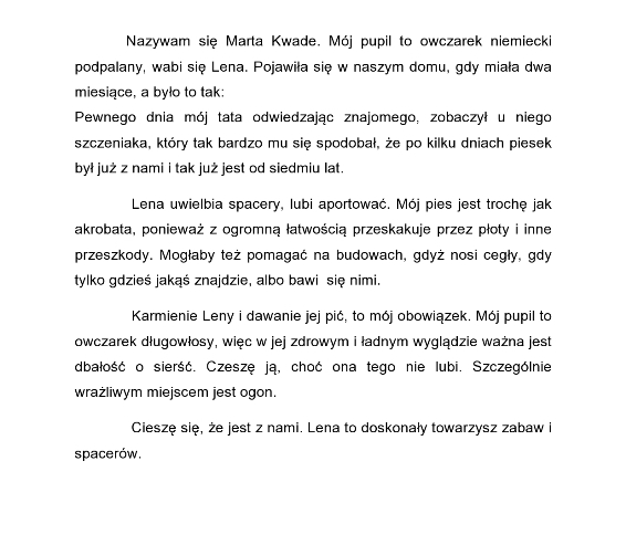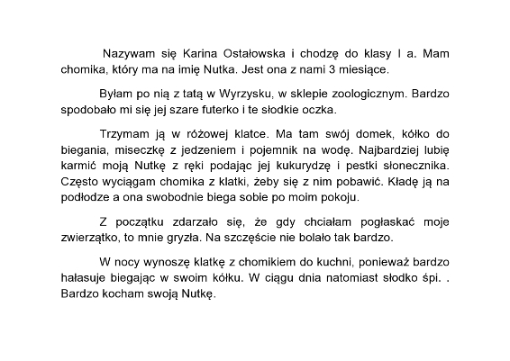 Spośród wszystkich nadesłanych przez Miłośników Zwierząt prac, wybraliśmy trzy, które zamieszczamy poniżej.