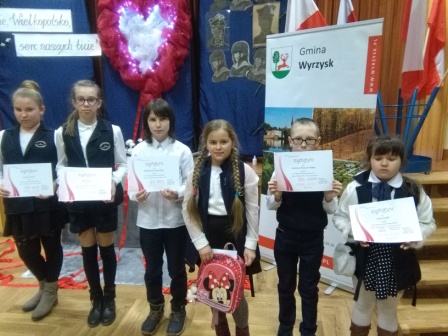 Naszą szkołę reprezentowali: Daria Stypka(kl.I), Maja Skibicka(kl. III), Damian Matuszewski(kl. III), Martyna Kalata(kl.V), Julia Soczka(kl.VI),Maximilian Rojewski(kl.VII).