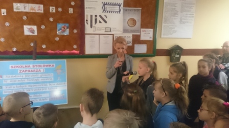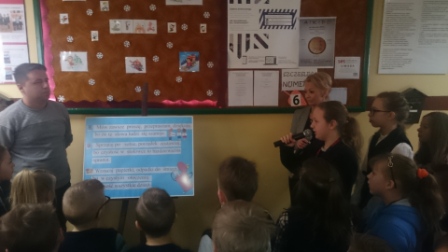 Dnia 2 marca odbył się - jak w każdy pierwszy piątek miesiąca, apel porządkowy dla klas I - VI. Tematem przewodnim spotkania było omówienie zasad zachowania się na szkolnej stołówce. Jako pierwszy głos zabrał Dyrektor szkoły - Pan Jacek Wiśniewski, który przekazał wszystkim uczniom informację na temat bieżącej organizacji pracy szkolnej stołówki. Po krótkim przemówieniu dyrektora, dalszą część apelu prowadzili opiekunowie Samorządu Uczniowskiego- pani Anna Nowak i pan Dawid Cerajewski. Opiekunowie przeczytali z podziałem na role ,dla wszystkich uczniów naszej szkoły, zagadkę, której hasłem była: ....?