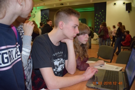 Aula IV Liceum Ogólnokształcącego im. KEN w Poznaniu, gdzie odbywało się całe przedsięwzięcie, podzielona była na sekcje tematyczne.