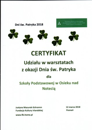 Nasza szkoła, która uczestniczy w programie „Irlandia w szkole”, otrzymała od Fundacji Kultury Irlandzkiej zaproszenie na obchody tego święta dla młodzieży szkolnej.