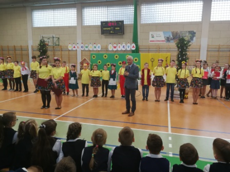 Słowa podziękowania kierujemy do pań: Edyty Marzoch – Gryczka, Aliny Nowak oraz rodziców uczniów klasy IV b, którzy pomogli przygotować dekorację, panu Leszkowi Kusz i zespołowi wokalnemu, panu Sławomirowi Pinkowskiemu i młodzieży z kl. II b i III c.
