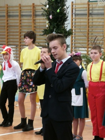 Na koniec młodzież złożyła świąteczne życzenia dyrekcji, gronu pedagogicznemu, pracownikom administracji i obsługi szkolnej, rodzicom oraz koleżankom i kolegom. Piosenka „Hallelujah” w wykonaniu Kamila Buda wprowadziła wszystkich w świąteczny i wiosenny nastrój.