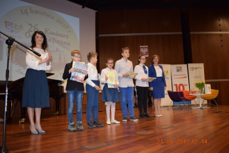 Dnia 21 kwietnia 2018 r. w Sali Miejskiej w Pile odbyła się 2-ga część XXVI Konkursu Ortograficznego Uczniów Szkół Podstawowych Powiatu Pilskiego – uroczystość wręczenia nagród laureatom. Wśród nich znalazła się reprezentująca naszą szkołę uczennica klasy IV a Anna Belka, która zajęła III miejsce w kategorii klas IV.