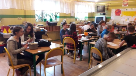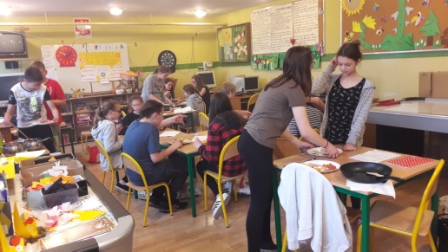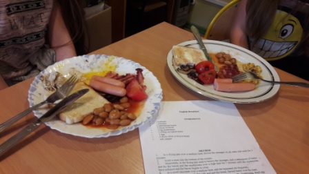 Najpierw realizowaliśmy kolejny etap projektu English breakfast, który był największą atrakcją tego wieczoru. Na podstawie wcześniej przygotowanych przepisów kulinarnych na tradycyjne angielskie śniadanie (w języku angielskim), musieliśmy sami sobie przygotować posiłek z dostępnych produktów. Była to wspaniała lekcja samodzielności i odpowiedzialności.