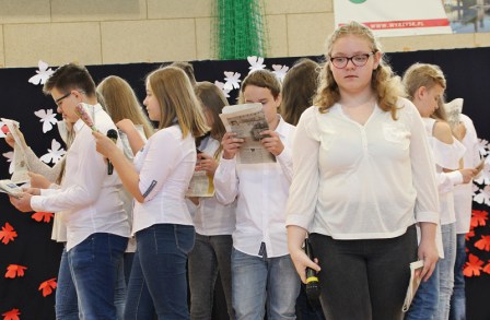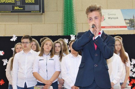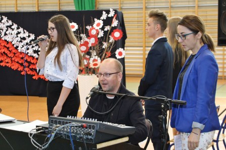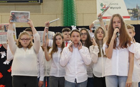Występujący siódmoklasiści chcieli opowiedzieć swoimi słowami - ale tak, by nie pominąć tego, co w tym dniu jest najważniejsze - o tym, czym dla nich jest owo święto oraz tak powszechnie dzisiaj używane pojęcie „patriotyzm”. Wspomnieli inne, ważne dla Polski w dążeniu do wolności wydarzenia historyczne oraz krytycznie, ale jakże prawdziwie podsumowali to, jakimi ludźmi jesteśmy w obecnych czasach. Skłonili również do refleksji nad naszym, „prywatnym” patriotyzmem. W czasie spektaklu, usłyszeć można było nagrane wcześniej słowa Preambuły, które z dostojeństwem w głosie wyrecytował Pan Dyrektor Jacek Wiśniewski.