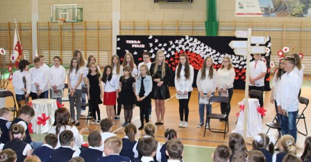 Natomiast dziewczęta z klas czwartych zatańczyły wymowny i symboliczny taniec z flagami Polski, który miał przypomnieć widzom o tym, że rok 2018 wyznacza setną rocznicę odzyskania przez Polskę niepodległości.