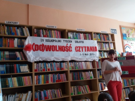 8 i 15 maja z okazji XV Ogólnopolskiego Tygodnia Bibliotek uczniowie klas: I a , I b , III a wraz ze swoimi wychowawczyniami: Katarzyną Centałą, Zofią Siemrzuch i Lucyną Wydeheft odwiedzili Bibliotekę Publiczną w Osieku n. Not.. Uczniowie poznali zasoby biblioteki oraz zasady korzystania z książek. Mieli za zadanie wytłumaczyć hasło tegorocznego święta „(Do)wolność czytania”. Panie zachęcały do zapisania się do biblioteki i częstego jej odwiedzania, nie tylko z okazji święta. Biblioteka, oprócz wypożyczania książek oferuje mnóstwo ciekawych konkursów i warsztatów itp.. Nie zabrakło również głośnego czytania. Aby nie zaginać rogów, po skończonym czytaniu, dzieci miały możliwość wykonania metodą origami kolorowych znaczników strony. Na pamiątkę spotkania wpisały się do kroniki, pozostawiając w niej dedykację oraz podpisy. Niezwykle ciekawe okazało się przeglądanie kronik z poprzednich lat. Wielu mogło zobaczyć zdjęcia swoich kolegów lub własne z poprzednich wizyt.