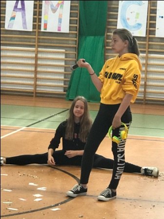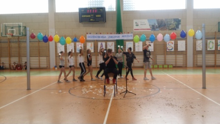 Najstarsi uczniowie naszej szkoły, czyli klasy VII, II i III gimnazjalne oraz dwie młodsze: IV a i VI a zaprezentowały na hali sportowej układy taneczne. Chętnych do udziału i zaprezentowania swoich umiejętności było co niemiara. Wszyscy uczestnicy przygotowywali się przeszło dwa tygodnie. Ich przemyślane i precyzyjnie wyćwiczone układy taneczne bardzo się wszystkim podobały.