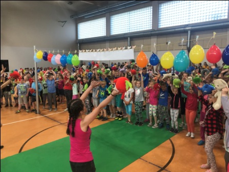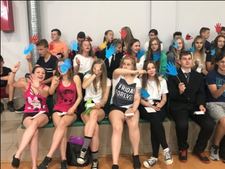 Podczas śpiewania dzieci i młodzież machała kolorowymi, papierowymi „łapkami”, które wcześniej przygotowała ze swoimi wychowawcami. Po zakończeniu imprezy szkolnej „łapki” trafiły na gazetkę SU. Każda dłoń oznacza ucznia należącego do społeczności szkolnej tworzącej Samorząd Uczniowski. Uczniowie wszystkich klas przynieśli także w tym dniu „świeżaki” lub inne maskotki, które potrzebne były do zabaw ruchowych prowadzonych przez starsze koleżanki.