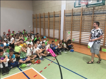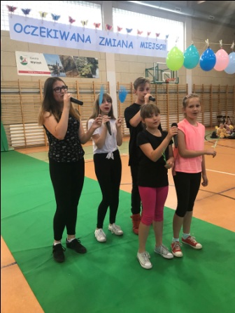 Dla uczniów zostały przygotowane ciekawe zagadki. Za prawidłowe odpowiedzi była słodka nagroda. Gdy uczniowie młodszych klas zmagali się w salach ze swoimi zadaniami, klasy IV – VI wraz z wychowawcami, na świeżym powietrzu rozegrali konkurs pt. „Skakanka grupowa”. Konkurencja, znana z dziecięcych zabaw podwórkowych, pozwalała sprawdzić umiejętność współpracy w grupie. Nad prawidłowym przebiegiem tej konkurencji czuwał pan Sławomir Pinkowski – nauczyciel wychowania fizycznego. Klasy IV b, V a i VI b poradziły sobie w tej zabawie najlepiej.