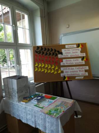 Uczestnicy zaprezentowali wybrany wiersz w języku niemieckim, który jest nie lada wyzwaniem dla młodzieży. Ocenie podlegał: wybór wiersza, stopień trudności wiersza, interpretacja utworu oraz ogólne wrażenie artystyczne. Po wygłoszonych wierszach zaproszono wszystkich na słodki poczęstunek, który przygotowały uczennice klas II.