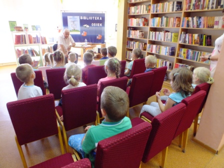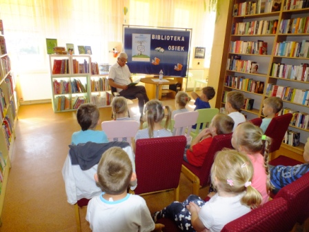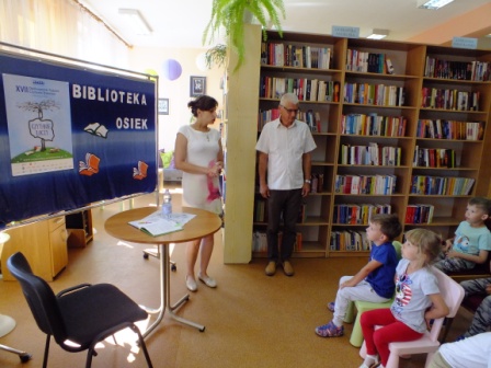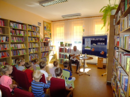 W środę 6 czerwca 2018 r. przedszkolaki z młodszego oddziału przedszkolnego ze Szkoły Podstawowej w Osieku nad Notecią zostały zaproszone przez panią bibliotekarkę Patrycję Kubińską do wzięcia udziału w XVII Ogólnopolskim Tygodniu Czytania Dzieciom ,,Czytanie Łączy”, które odbyło się w sąsiadującej z naszą szkołą Bibliotece Publicznej. Do biblioteki przybył bardzo ważny gość, a mianowicie dyrektor naszej szkoły pan Jacek Wiśniewski, który w kilku słowach opowiedział przedszkolakom jak bardzo lubi czytać i jak wielkie znaczenie mają dla niego książki .Następnie pan dyrektor przeczytał dzieciom opowiadanie Grzegorza Kasdepke pt. ,,Mecz, czyli o uczciwości”. Na koniec przedszkolaki wykonały rysunki pod hasłem ,,Zabawa z tatą”. Dziękujemy pani Patrycji Kubińskiej za zaproszenie i panu dyrektorowi za wysłuchanie pięknie przeczytanego opowiadania.