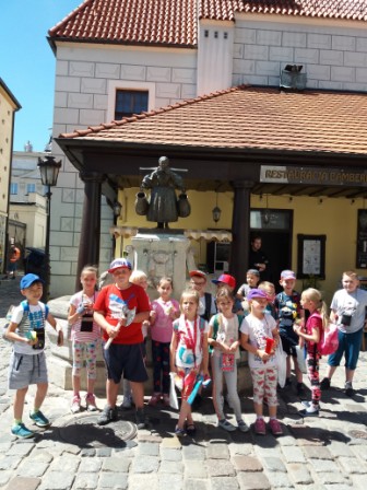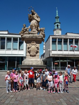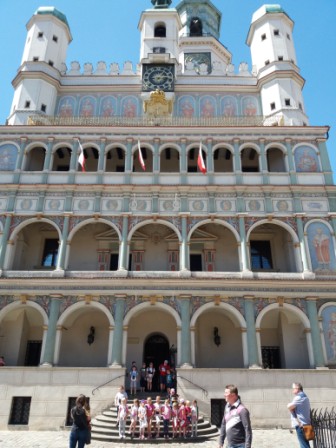 Następnie wszyscy udali się na Stary Rynek, by o godzinie 1200 sprawdzić, czy na wieży ratuszowej pojawiają się koziołki, oczywiście pojawiły się i 12 razy tryknęły się. Potem podróżnicy poszukiwali zabytków, które wcześniej widzieli na zdjęciach i filmikach w internecie. Z łatwością odszukali: Ratusz, Kamieniczki Budnicze, Pręgierz, Wagę Miejską, Odwach, Pałac Działyńskich, Figurę św. Jana Nepomucena, Studzienkę Bamberki, Fontannę Prozerpiny, Fontannę Apolla, Fontannę Neptuna i Fontannę Marsa.