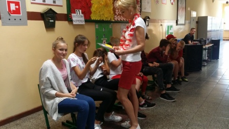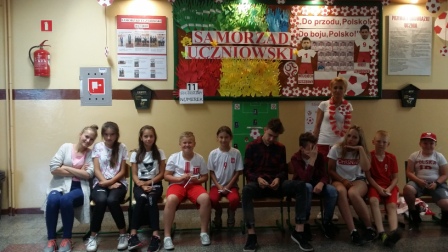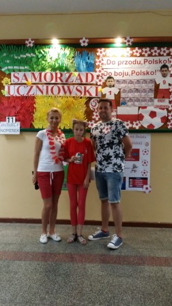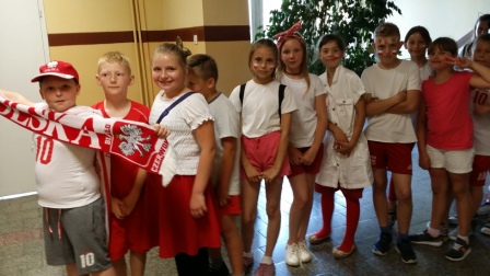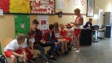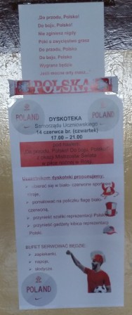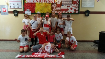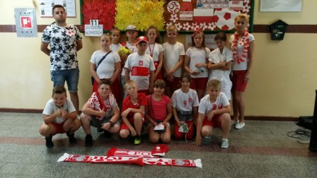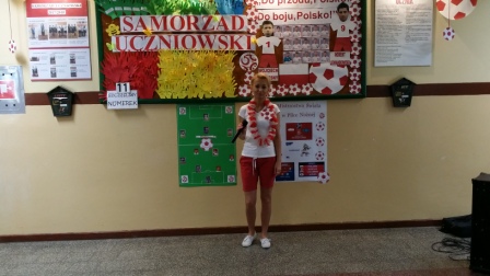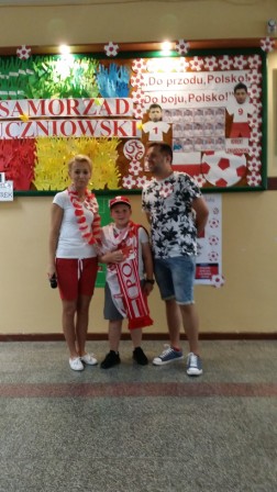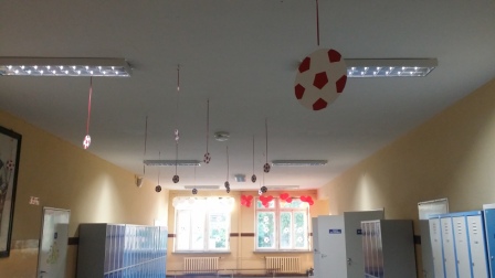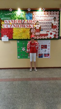Gazetka Samorządu Uczniowskiego oraz cały korytarz na parterze udekorowany w biało-czerwone piłki i biało-czerwone balony, zdjęcia piłkarzy polskiej „11-stki”, w plakaty informujące o ważnym wydarzeniu – przypominały strefę kibica piłki nożnej.