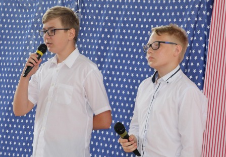 Dominował oczywiście język angielski. Kamil Buda, uczeń II klasy gimnazjum – wyróżniony w Konkursie piosenki anglojęzycznej organizowanym przez Szkołę Podstawową w Wyrzysku piosenką „LIGHT me up” rozpoczął spotkanie. Po powitaniu, Wiktoria Badura, uczennica klasy VI a, uczestniczka konkursu piosenki anglojęzycznej zaśpiewała utwór "Seven years".