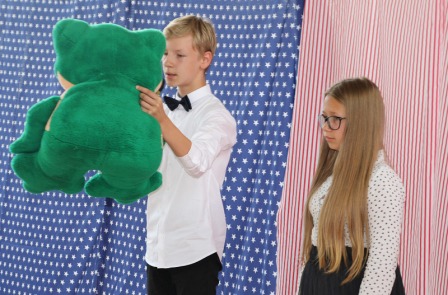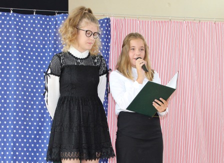 Ale na naszym widowisku były one recytowane po polsku i po angielsku. Aleksandra Regulska, uczennica kl. VII a, która w Międzyszkolnym konkursie poezji anglojęzycznej organizowanym przez Liceum Salezjańskie w Pile zdobyła II miejsce w swojej Kategorii, a w konkursie głośnego czytania w języku angielskim – III miejsce, recytowała wiersz „Leń” Jana Brzechwy. Kacper Home, uczeń klasy V a, przedstawił wersję oryginalną, czyli po polsku.