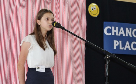 Ostatnim punktem naszego widowiska było przedstawienie „Changing places” zaprezentowane przez uczniów klasy VI a. W roli głównej wystąpiła Nadia Głuszanowska – finalistka Rejonowego konkursu j. angielskiego, a w ubiegłym roku szkolnym finalistka Wojewódzkiego Konkursy Języka Angielskiego. Nadia została również wyróżniona w Międzyszkolnym konkursie głośnego czytania w j. angielskim. W pozostałych rolach: Jagoda Mrotek, Julia Bugaj, Fabian Wolski, Kinga Piszczek, Agata Pawlaczyk, Eryk Anuszkiewicz, Zuzanna Krym, Dominik Stypka, Łukasz Żupinski, Tobiasz Nosek, Kamil Rybarczyk, Kacper Guza, Oliwia Scharwerk; gościnnie Kacper Home z klasy V a.