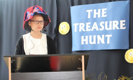 Następnie uczniowie klasy V a – Paweł Matuszewski, Kacper Home, Zuzanna Ośko, Nadia Ostałowska, Martyna Kalata, Krystyna Skwierawska, Julia Garczyńska, Aleksandra Janik i Nikola Hein, zaprezentowali się w przedstawieniu „The treasure hunt”. Gościnnie wystąpili Jagoda Mrotek, Nadia Głuszanowska i Kinga Piszczek z klasy VI a.