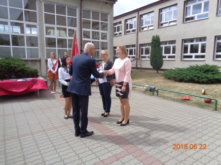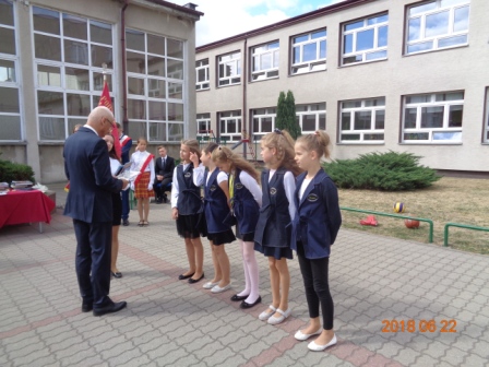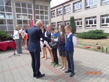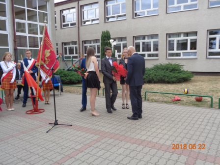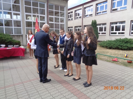 Po części artystycznej dyrektor szkoły, Jacek Wiśniewski wręczył nagrody książkowe uczniom, którzy osiągnęli najwyższe średnie w nauce i zachowaniu, a pozostałej młodzieży świadectwa wręczyli wychowawcy poszczególnych klas. W dalszej kolejności pamiątkowe dyplomy, świadectwa i nagrody otrzymali uczniowie klas trzecich gimnazjum.