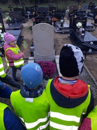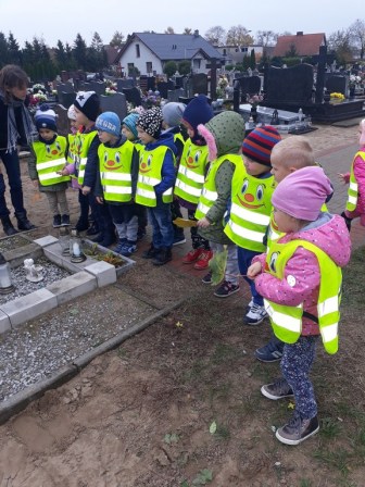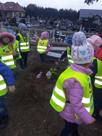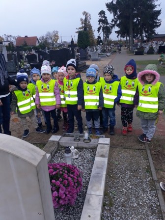 Pamięć o zmarłych jest obowiązkiem każdego człowieka. W dniu 30 października 2018 roku dzieci z Młodszego Oddziału Przedszkolnego wybrały się na pobliski cmentarz, w celu uczczenia pamięci zmarłych. W czasie spaceru, dzieci poznały tradycje oraz zwyczaje związane z tym świętem w naszej kulturze i religii, a także złożyły znicz na grobie Nieznanego Żołnierza. Zatrzymaliśmy się także przy grobach opuszczonych i zaniedbanych.