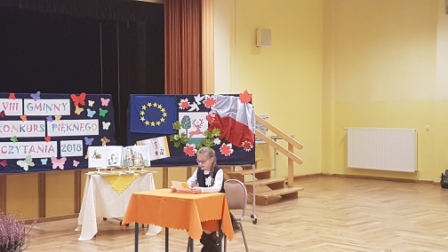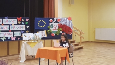 W czwartek 15 listopada 2018 roku w Szkole Podstawowej w Wyrzysku odbył się VIII Gminny Konkurs Pięknego Czytania. Naszą szkołę reprezentowały uczennice klas młodszych: Daria Stypka z klasy II b, oraz Amelia Cieśla i Kinga Głuszanowska z klasy III a.