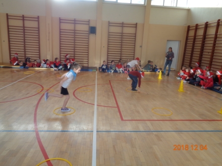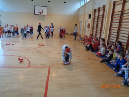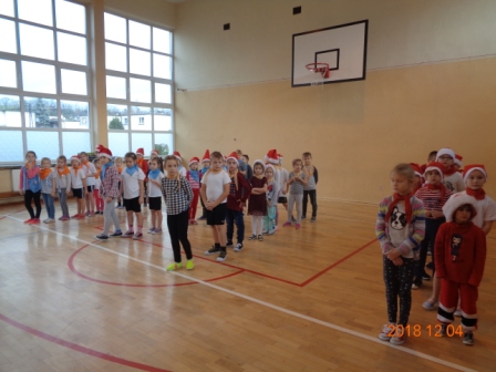 W tym roku świąteczny nastrój wprowadziliśmy nieco wcześniej bo już 4 grudnia. Tego dnia uczniowie klas młodszych wraz z koleżankami i kolegami z oddziału „0” oraz zaproszonymi przedszkolakami z tutejszego przedszkola brali udział w „Mikołajkowych grach i zabawach”. W miłej i radosnej atmosferze dzieci spędziły ze sobą czas, a sportowa rywalizacja na wesoło była okazją do wzajemnego poznania się. Na koniec zawodnicy otrzymali słodki poczęstunek i pozowali do wspólnego zdjęcia.