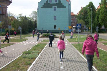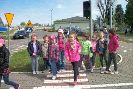 Tam dzieci wysłuchały pogadanki o bezpieczeństwie na drodze. Pan Stanisław Jędraszczak, prowadzący spotkanie, zwrócił dzieciom szczególną uwagę na zagrożenia podczas złego przechodzenia przez ulicę, niewłaściwego zachowania się na przystanku autobusowym, czy podczas zabaw w pobliżu drogi oraz gdy nie mamy zapiętych pasów w czasie jazdy samochodem. Wszystkie tego typu złe nawyki i sytuacje mogą zakończyć się nieszczęściem. Dzieci miały też okazję ćwiczyć prawidłowe przechodzenie przez ulicę na specjalnie przygotowanym placu oraz otrzymały pamiątkowe znaczki odblaskowe, które przypięły do plecaków.