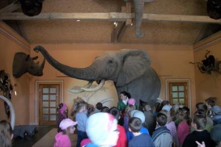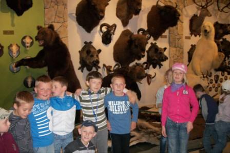 W drodze powrotnej zwiedziliśmy Pawilon Trofeów Myśliwskich Henryka Stokłosy w Śmiłowie. Dzieci były zachwycone tym miejscem, bo mogły z bliska obejrzeć zwierzęta naszych lasów, jak i wiele egzotycznych. Największy zachwyt wywołał słoń, bizon i niedźwiedź polarny. Na pamiątkę spotkania dzieci otrzymały foldery z wyprawami pana Stokłosy.