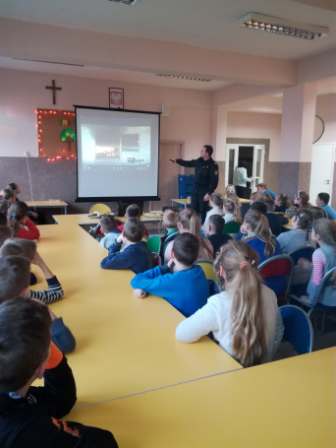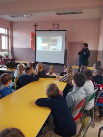 Najpierw 19 grudnia uczniów klas IV odwiedził mł. ogn. Mateusz Kentzer z Państwowej Straży Pożarnej w Pile. Przybył do naszej szkoły w ramach akcji „Czujka na straży Twojego bezpieczeństwa!”. Jest to ogólnopolska kampania edukacyjno-informacyjna na temat zagrożeń związanych z możliwością powstania pożarów w mieszkaniach lub domach jednorodzinnych oraz zatruciem tlenkiem węgla.