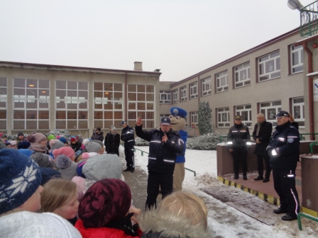 20 grudnia grupa gości , którzy zaszczycili swoją obecnością naszą szkolę była jeszcze liczniejsza. Z inicjatywy Komendanta Komisariatu Policji w Wyrzysku kom. Marcin Towalewski oraz Komendant Straży Miejskiej Anny Rzyduch odbyła się pogadanka na temat zagrożeń jakie niesie odpalanie petard.