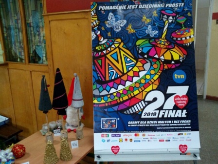 Po raz pierwszy w tym roku postanowiliśmy wesprzeć Wielką Orkiestrę Świątecznej Pomocy. W tym celu uczniowie pod kierunkiem Pana Leszka Kusza na lekcjach plastyki a także w domach wraz z rodzicami, wykonali piękne kartki bożonarodzeniowe oraz najróżniejsze, pięknie wykonane świąteczne cudeńka. Pyszne, pachnące z daleka ciastka i rogale upiekły Panie ze świetlicy szkolnej – Pani Jolanta Łukowska i Pani Marta Kownacka.