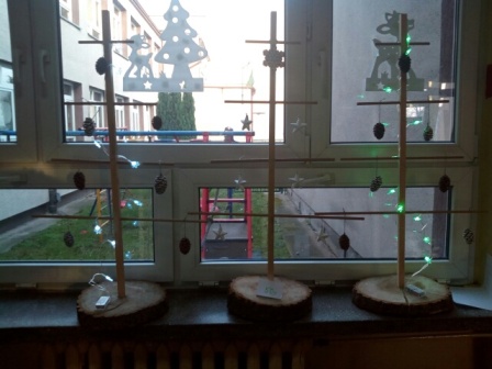 W wykonaniu dekoracji pomagali chętni uczniowie. Wśród nich byli uczestnicy zajęć „Kreatywni na Boże Narodzenie” oraz uczniowie ze świetlicy szkolnej, którzy pod opieką Pani Edyty Marzoch – Gryczki stworzyli świąteczne cacka.