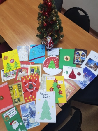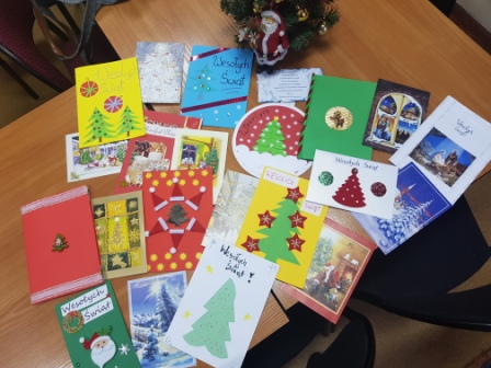 Zbiórka kartek świątecznych dla osób samotnych, starszych i chorych to ostatnia zaplanowana akcja Szkolnego Koła Wolontariatu w tym roku kalendarzowym. Wolontariusze własnoręcznie wykonali przepiękne kartki bożonarodzeniowe, w których znalazły się życzenia z okazji zbliżających się świąt. Młodzi członkowie SKW chcieli pokazać, że pamiętają o starszych, chorych mieszkańcach naszej miejscowości i życzą im spokojnych, radosnych świąt. Ten mały gest wiele znaczy dla tych osób. Świadczy o tym, że ktoś o nich pamięta.