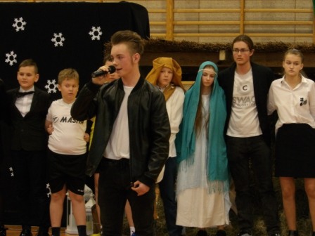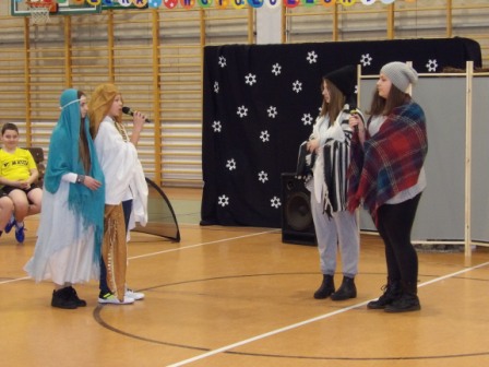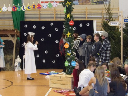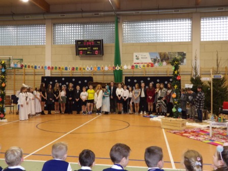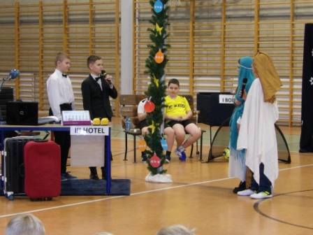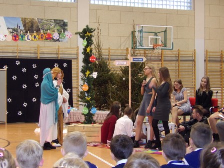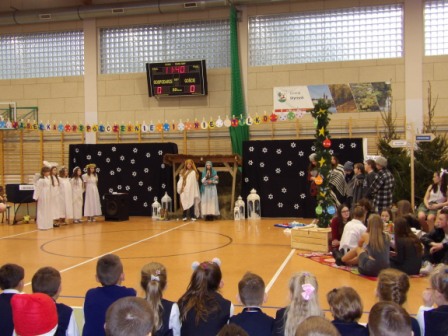 W świąteczną atmosferę wprowadzili nas uczniowie klasy V b i III b oddziału gimnazjalnego, którzy przygotowali "Jasełka współcześnie i nie tylko..." Zaprezentowali je 21 grudnia, przypominając w ten sposób wydarzenia sprzed ponad dwóch tysięcy lat, kiedy to w Betlejem narodziło się Boże Dzieciątko.