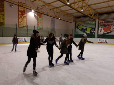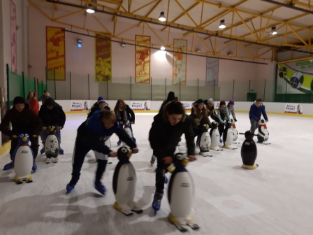 3. W ostatnim dniu tegorocznych ferii zimowych uczniowie klasy VII A pojechali na lodowisko do Piły, by zaznać trochę zimowego sportu. Przeżyli oni 70 minut cudownej zabawy na łyżwach, w której niektórym pomagały pingwinki :). Byli też tacy, którzy doskonalili jazdę ćwicząc przekładankę bokiem czy po prostu jazdę na czas.