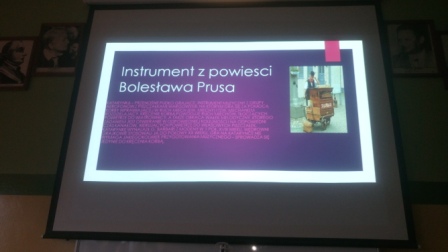 Była to także znakomita okazja do tego, by zorganizować w klasie Vd „Klasowy Konkurs Pięknego Czytania”. Każdy uczeń przez dwie minuty czytał wybrany fragment tekstu „Katarynki”, a specjalnie powołana komisja, oceniała czytających w kategoriach: umiejętności interpretacji tekstu literackiego, dbałość o dykcję oraz wrażliwość na kulturę słowa. Chętne dzieci przygotowały prezentacje multimedialne o katarynce i kataryniarzach oraz o twórczości i życiu Bolesława Prusa. Obejrzeliśmy je w trakcie trwania konkursu.