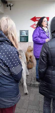 Jak co roku, w schronisku przywitała nas Pani Dyrektor Izabella Szolginia wraz ze swoją psią towarzyszką Lilou. Opowiedziała nam o potrzebach psów i kotów, ich życiu w schronisku, a także o okrucieństwie człowieka wobec czworonogów, które sama na co dzień obserwuje, gdy do schroniska przywożone są psy, czy koty skrzywdzone przez właścicieli. Dowiedzieliśmy się także, jakie plany związane z rozwojem schroniska Pani Dyrektor ma na najbliższe lata. Po obiekcie oprowadziła nas jedna z pań opiekunek zwierząt, która odpowiadała na wyszukane pytania najbardziej dociekliwych miłośników zwierząt.