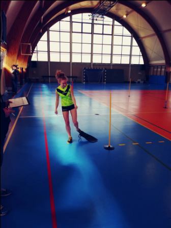1. Rzut do kosza po kozłowaniu piłeczką do tenisa stołowego.