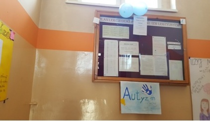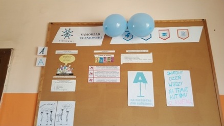 Fundacja SYNAPSIS, wraz z innymi organizacjami działającymi na rzecz osób z autyzmem w Polsce i na świecie, celebrowała to święto, włączając się w globalną akcję „Zaświeć się na niebiesko“. W tym dniu symbolem solidarności z osobami z autyzmem był kolor niebieski. Jako członkowie Szkolnego Koła Wolontariatu braliśmy udział w tej akcji i pokazaliśmy nasze wsparcie dla osób autystycznych. W budynku Szkoły Podstawowej przy ul. Głównej zorganizowaliśmy akcję plakatową oraz zachęcaliśmy wszystkich uczniów i nauczycieli, by drugiego kwietnia ubrać coś w kolorze niebieskim. Wolontariusze przedstawili we wszystkich klasach krótką informację na temat zaburzenia autyzmu.