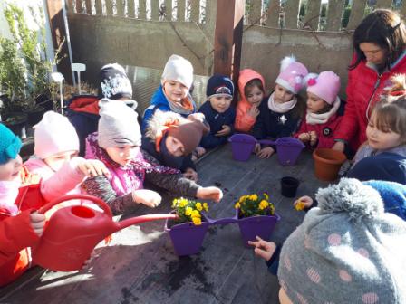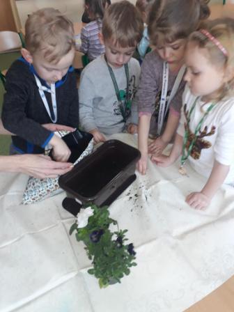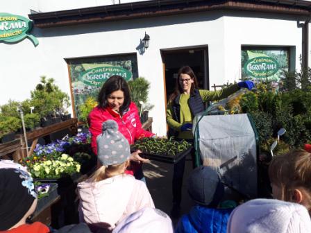 Najpierw dzieci zwiedziły sklep z różnymi urządzeniami ogrodniczymi. Wnętrze sklepu zrobiło na nas duże wrażenie. Kolorowe doniczki, grabie, łopaty, nasiona i inne akcesoria ogrodnicze bardzo się dzieciom spodobały. Następnie przedszkolaki miały okazję uczestniczyć w lekcji sadzenia kwiatów. Na zakończenie spotkania dzieci otrzymały dyplom oraz słodki poczęstunek.
