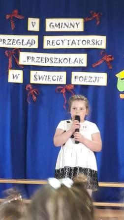 Dnia 14.05.2019r. w Szkole Podstawowej im. Janusza Korczaka odbył się V Przegląd Recytatorski „Przedszkolak w świecie poezji”, w którym wzięło również udział czworo przedszkolaków z naszej szkoły. Każdy uczestnik został nagrodzony nie tylko gromkimi brawami, ale również wspaniałymi nagrodami rzeczowymi.